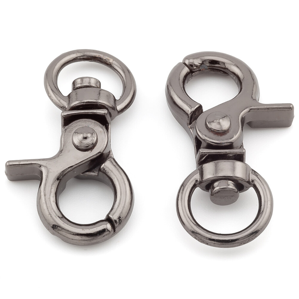 Карабін виготовлений з металевого сплаву. Застосовується в сумочному, швейному та галантерейному виробництві. Карабін використовується для кріплення ланцюгів, лямок та ременів до виробу, а також як елемент застібки.