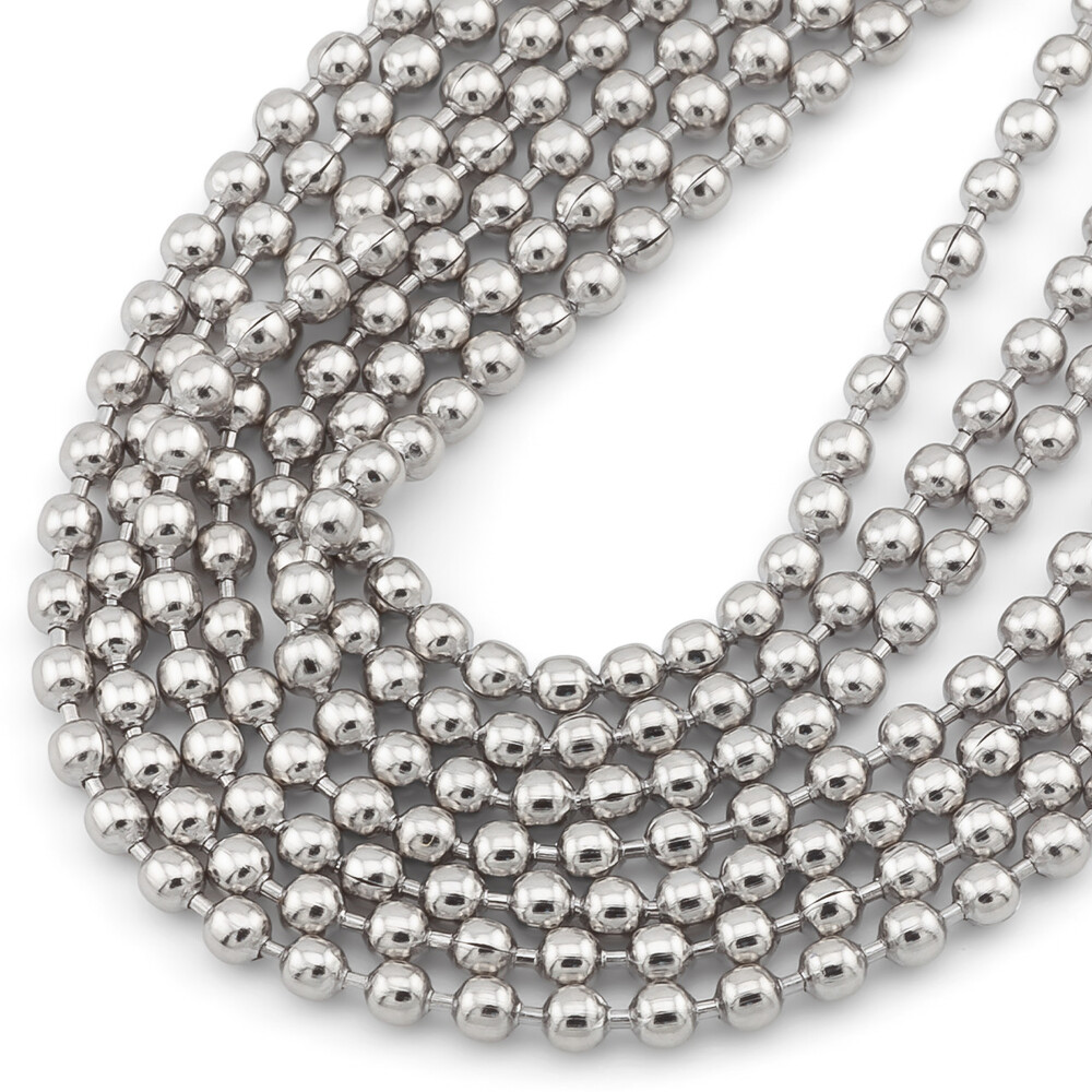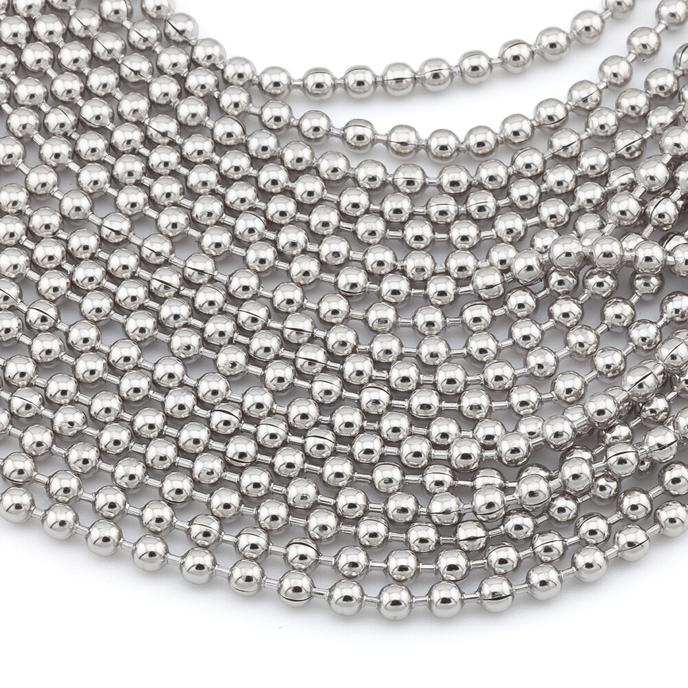 Ланцюг кульковий для жетона/бейджа нержавіюча сталь 60 см діаметр 2,4 мм Платина 1 шт.