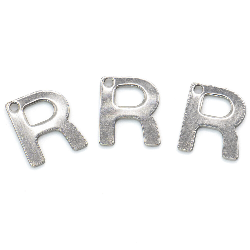 Буква R подвеска из нержавеющей стали 9х11 мм Платина 5 шт.
