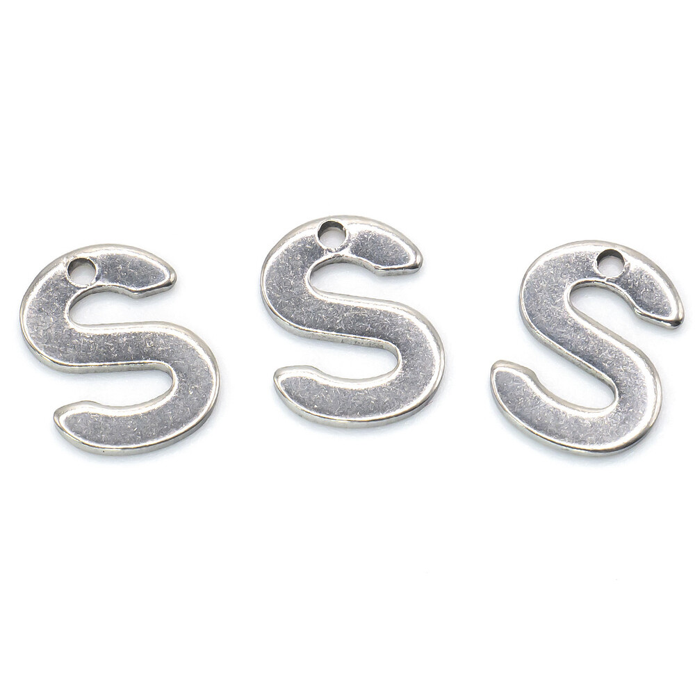 Буква S подвеска из нержавеющей стали 9х11 мм Платина 5 шт.