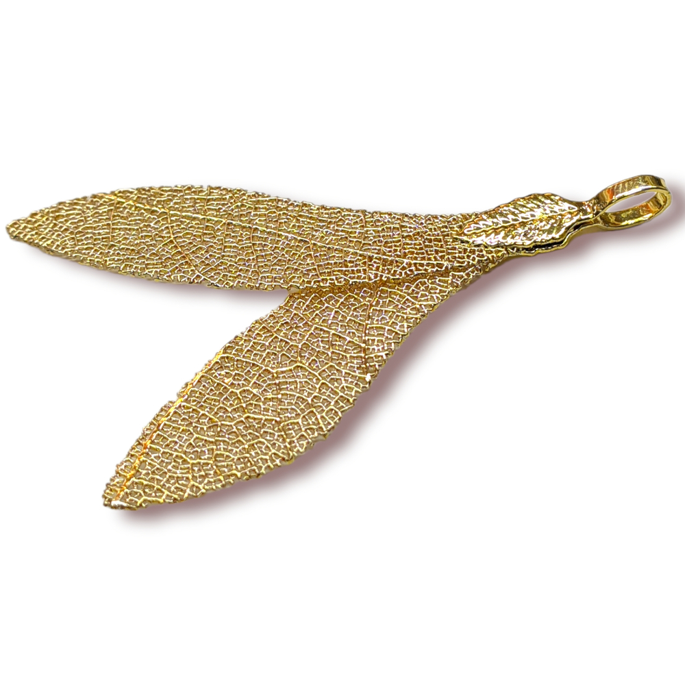 Натуральный Лист, Хвост русалки, Гальваника, Размер 30х50мм, Цвет Золото
