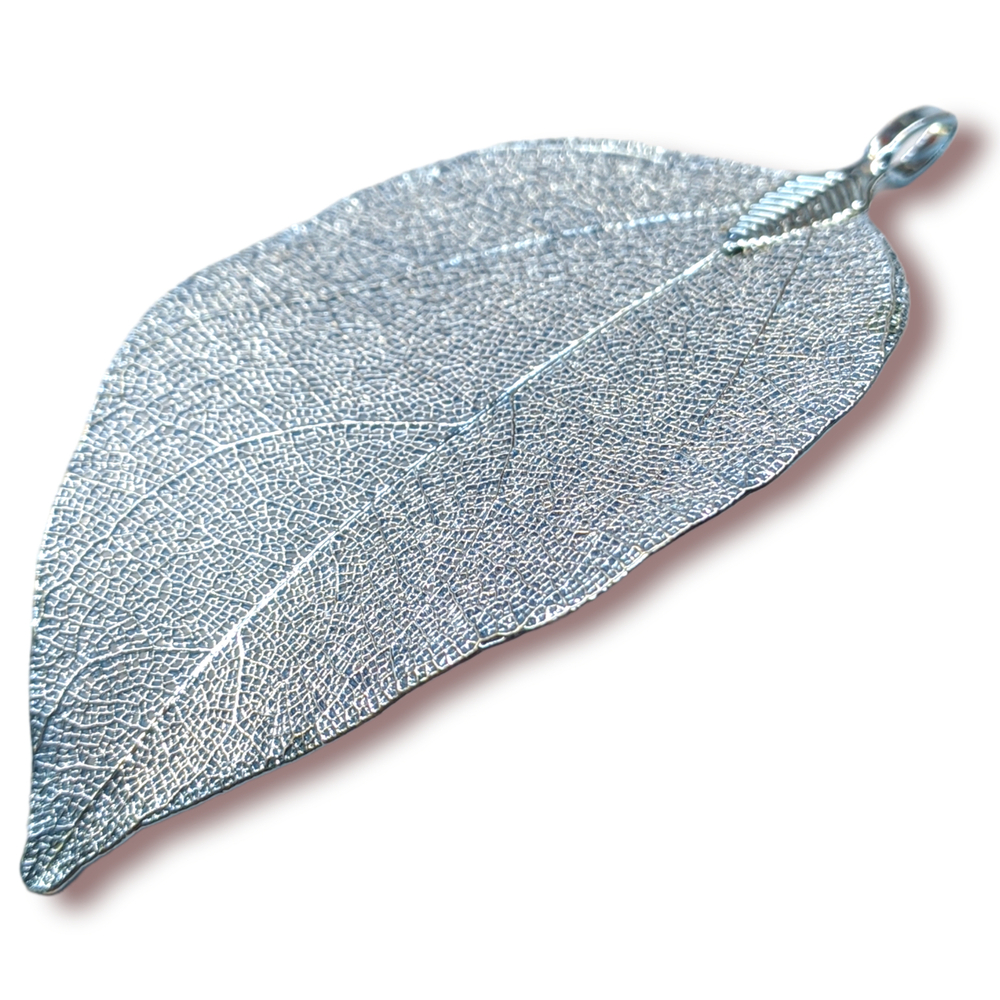 Это совместное творение - природы и современных технологий. В основе - натуральный природный лист, металлизированный гальваническим способом. Каждое изделие уникально своей формой и рисунком прожилок.