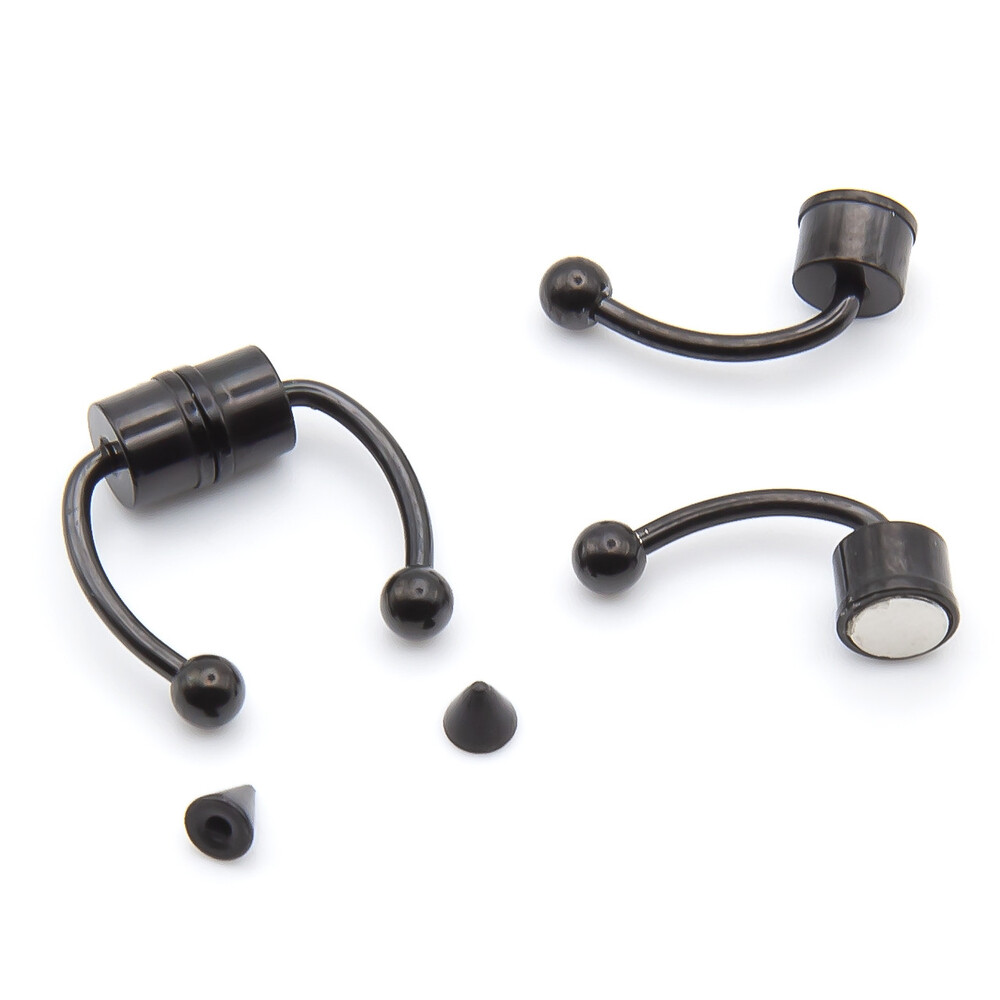 Полукольцо магнитное + 2 насадки, пирсинг из нержавеющей стали, размер 13х1.2х5мм, цвет Черный, 1 шт.