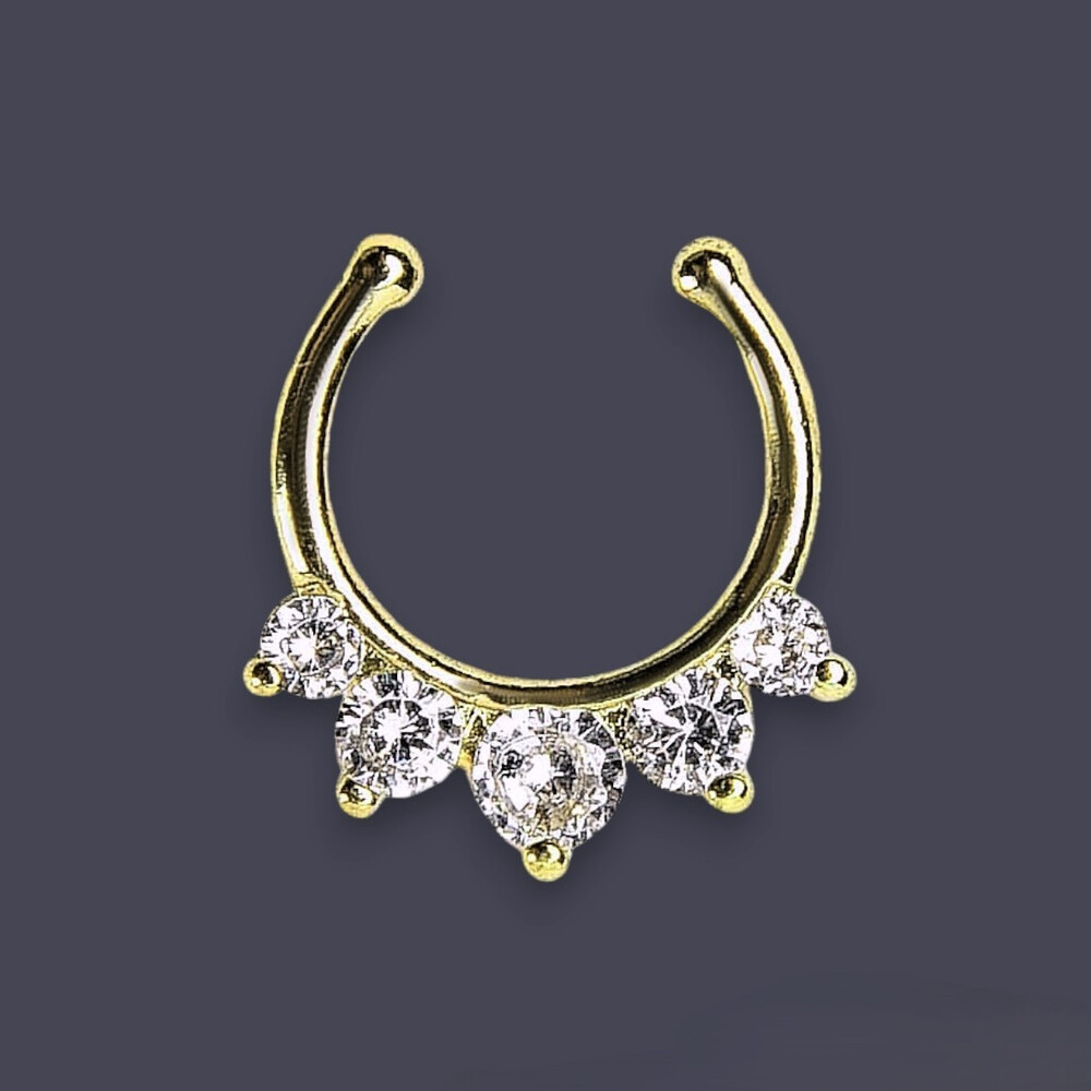 Септум обманка №7 серьга для пирсинга 5 страз 15х14 мм Ø 7,5 мм 1 шт. Античное золото