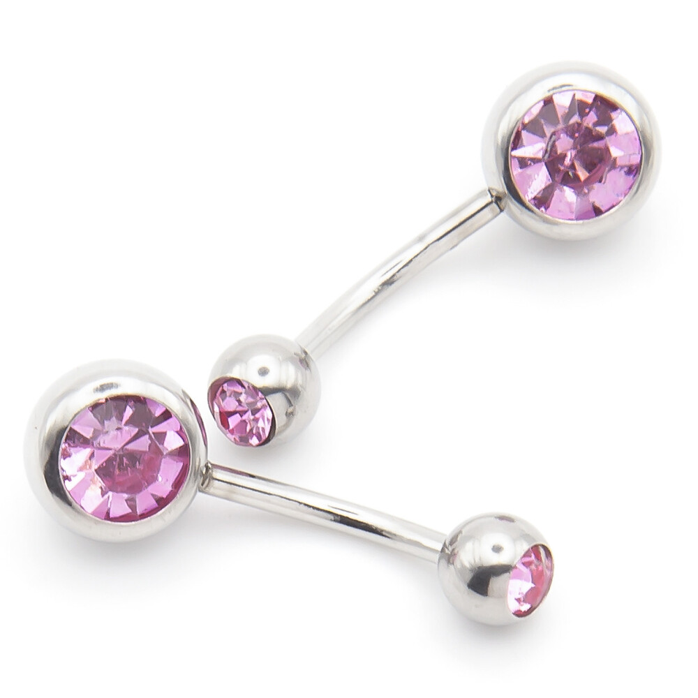 Серьга для пирсинга Банан, стразы, из нержавеющей стали, размер 12х5/8х1,5мм, цвет Розовый светлый, 1 шт.