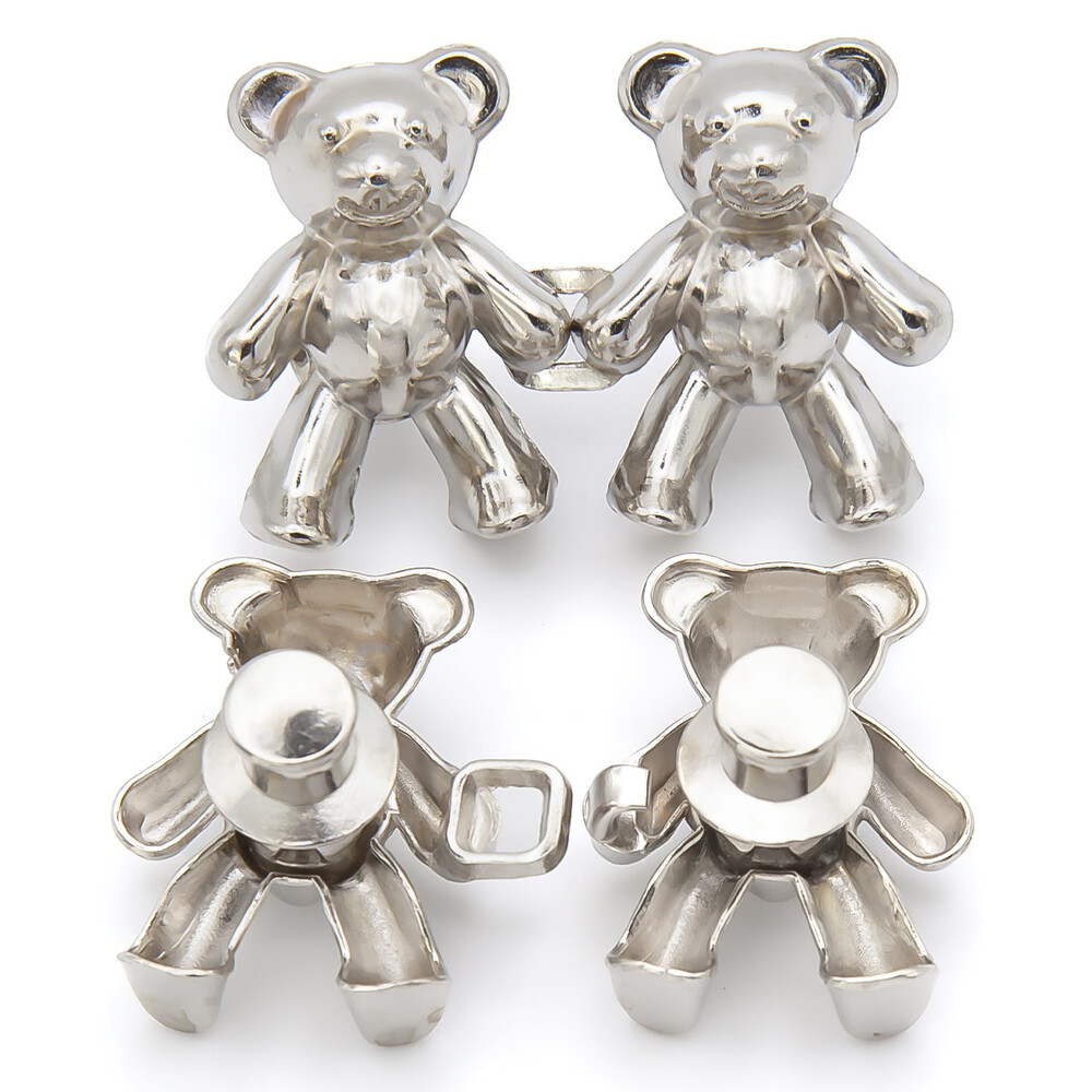 Зажим-застежка для джинс Мишки, 1 уп., размер 40х26мм, цвет Платина