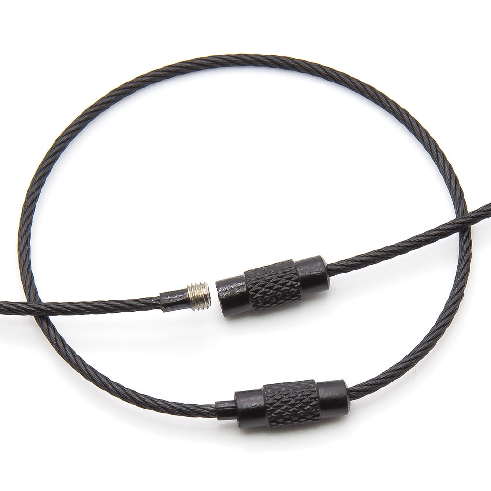 Основа для брелка металлический тросик с замком 150х1,5 мм Черный