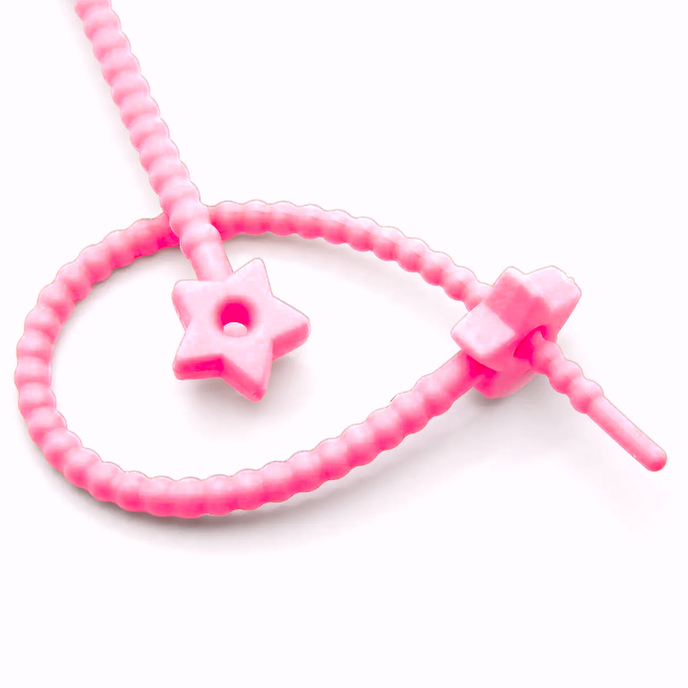 Стяжка силиконовая Звездочка со стопом 20 см Розовый неон