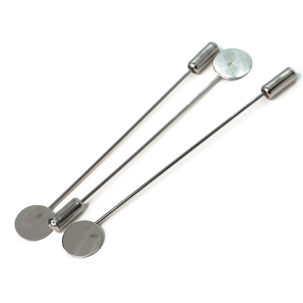 Булавка основа для броши с заглушкой и платформой 75х10 мм Платина 6 шт.