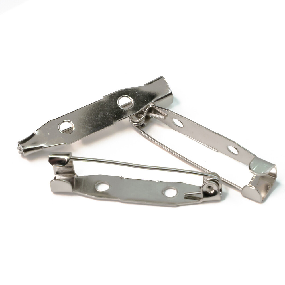 Основа для броши булавка 2 отверстия 20х4 мм Платина 30 шт.