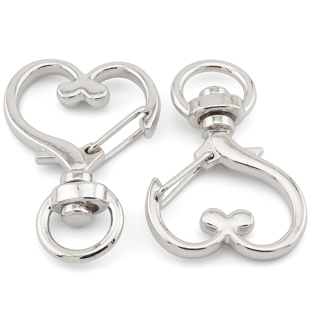 Карабин изготовлен из металлического сплава в форме сердца. Применяется в сумочном, швейном и галантерейном производстве.