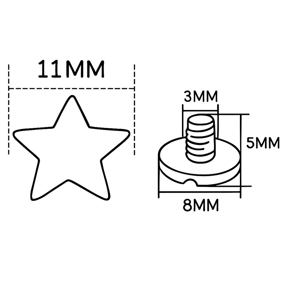 Звёзды винтовые декоративные — это уникальный элемент декора, сочетающий в себе эстетику и практичность. Изготовленные из металла или прочного пластика, они имеют форму звезды с винтовым креплением, которое надёжно фиксирует их на различных поверхностях. Эти декоративные винты идеально подходят для украшения аксессуаров, ручной работы, мебели или текстильных проектов. Благодаря необычной звёздной форме, такие элементы добавляют яркий акцент любому изделию. Они могут выполнять как чисто декоративную функцию, так и служить частью функционального крепления. Их часто используют в создании украшений, одежды в стиле панк или рок, а также в различных дизайнерских объектах, где требуется нестандартная фурнитура. Установка звёзд чрезвычайно проста — благодаря винтовому механизму они легко прикручиваются к ткани, коже, экокоже или дереву. Обычно состоят из двух частей: декоративной "звезды" с лицевой стороны и винта или шайбы с изнанки. Это позволяет надёжно закрепить деталь без необходимости в специальном инструменте. Декоративные винтовые звёзды доступны в разных размерах и цветах — от классического серебра и золота до чёрного металла и ярких цветных вариантов с покрытием. Они помогут воплотить самые смелые дизайнерские идеи, добавив характер и завершённость любому проекту.