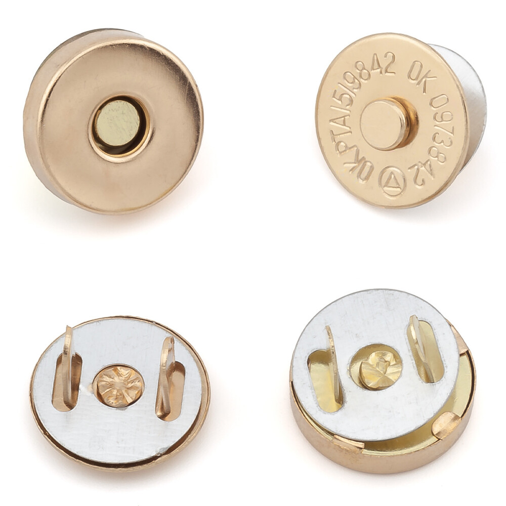 Удобная в использовании магнитная кнопка - идеальное решение для вашей сумки или клатча. Состоит из 4-х элементов: магнитная сторона, металлическая сторона и 2 фиксатора для крепления.