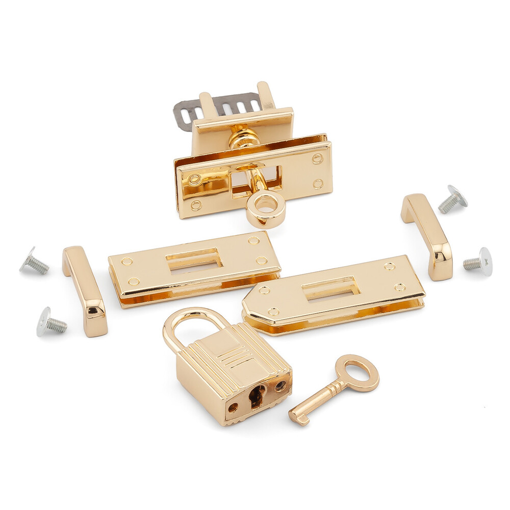 Добавьте роскошный акцент к вашей сумке с этим элегантным и функциональным набором замка. Данный комплект состоит из семи деталей, которые идеально дополнят вашу сумку.