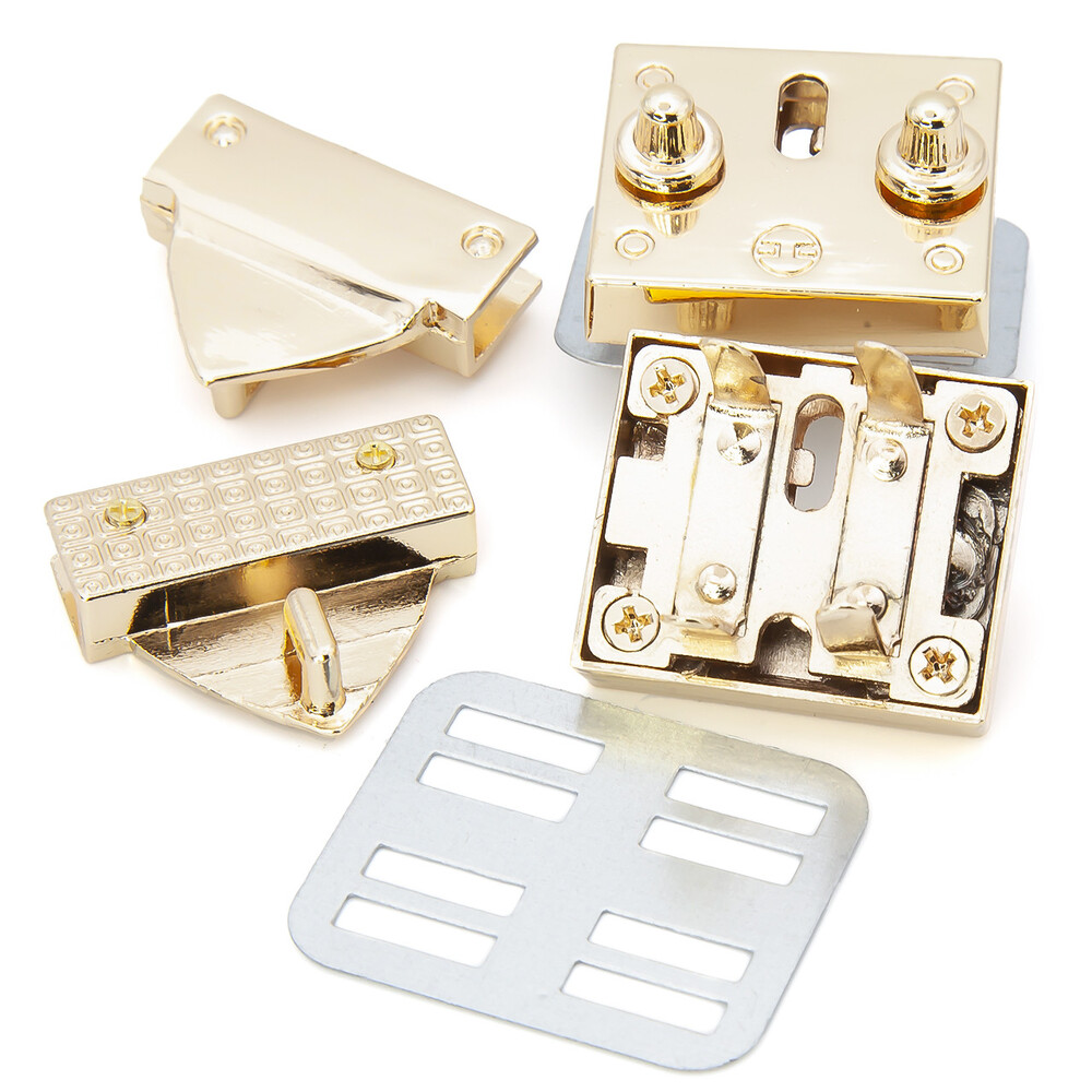 Замок для сумки защелка с двумя кнопками 36х30х7 мм 1 шт. Золотистый