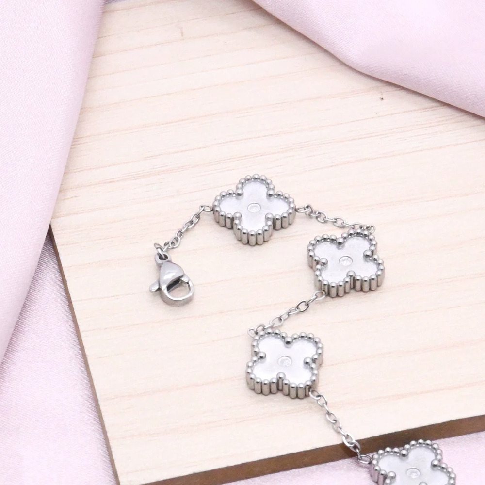 Браслет «Клевер» из нержавеющей стали – это стильный аксессуар, сочетающий в себе утонченность и практичность. Его основа изготовлена из высококачественной нержавеющей стали, которая не ржавеет, не тускнеет и сохраняет свой блеск на протяжении многих лет. Особенностью этого браслета является 5 заготовок в форме четырехлистника. Эти заготовки можно заполнить эмалью разных цветов, создавая уникальный дизайн, который будет идеально подходить к вашему стилю. Четырехлистник символизирует удачу, поэтому этот аксессуар может стать вашим персональным талисманом. Браслет имеет аккуратную цепочку, которая придает аксессуару легкость и универсальность. Благодаря своему дизайну он подойдет как для повседневной носки, так и для особых случаев. Этот браслет станет отличным подарком для близкого человека или приятным дополнением к вашей коллекции аксессуаров.