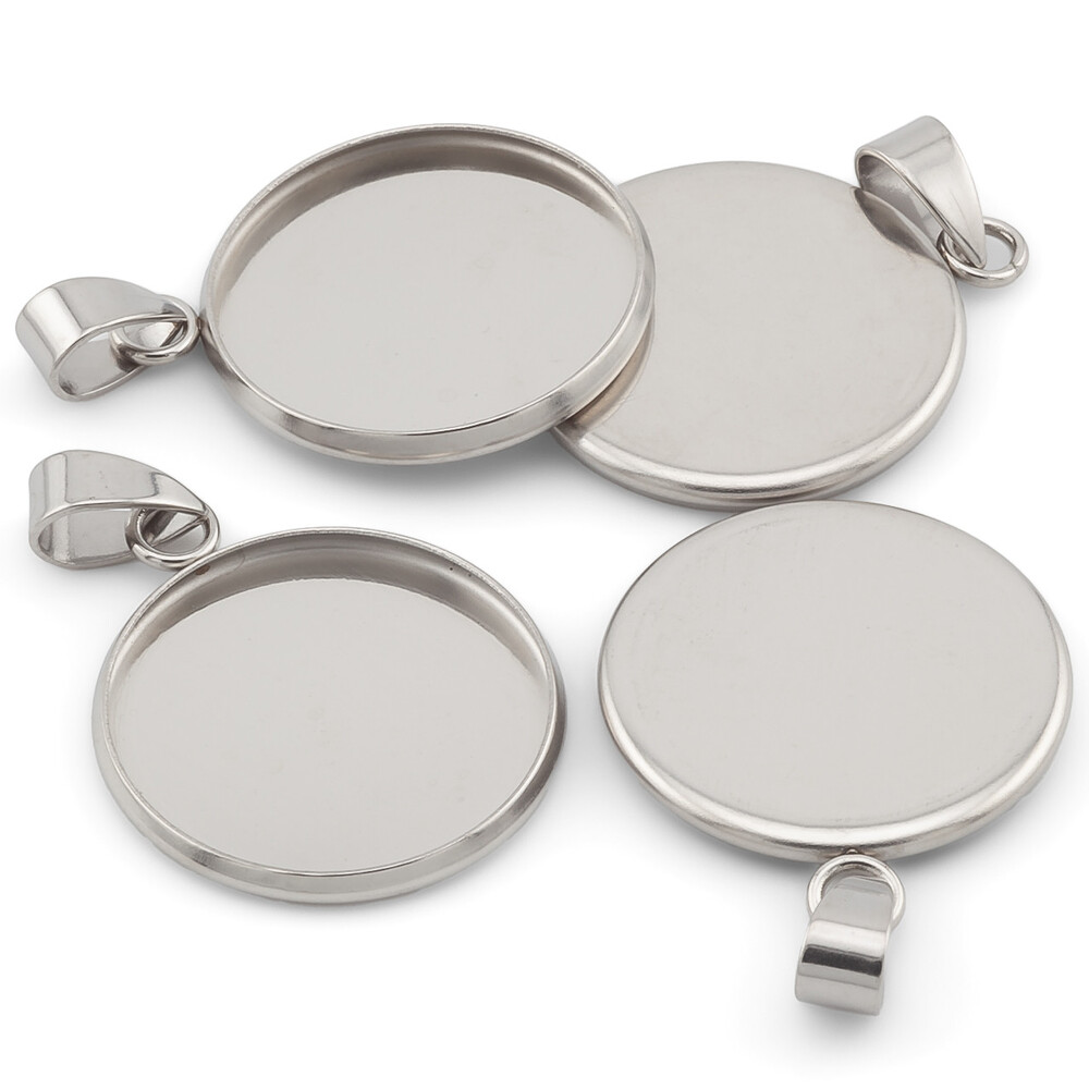 Основа для кулона либо подвески изготовлена из нержавеющей стали. Она имеет круглую платформу для фиксации декора. Позволяет создать уникальную подвеску и изготовить оригинальное колье. Он легко крепится к основе из шнура, ленты или цепи.