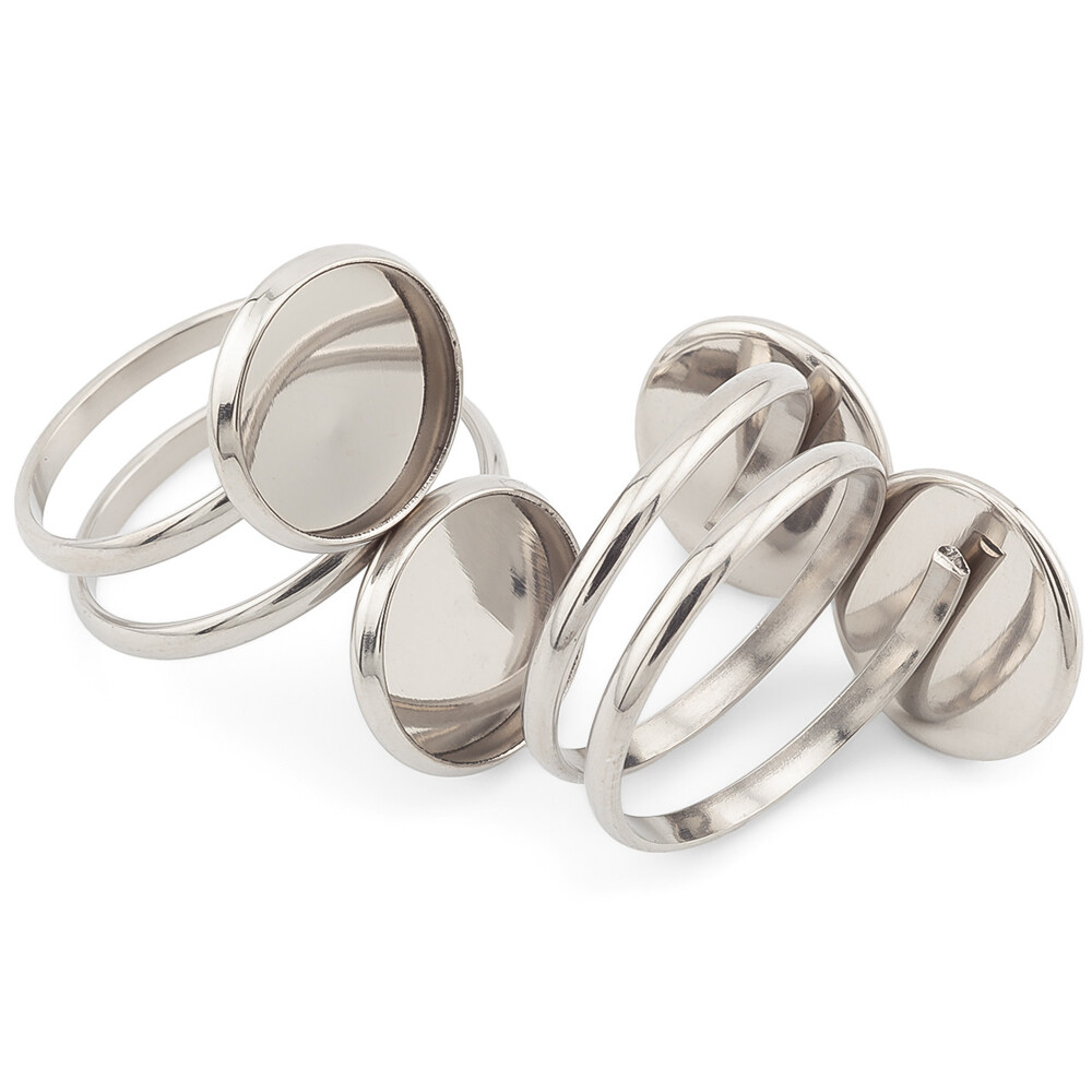 Заготовка, основа под кольцо изготовлена из нержавеющей стали. Она имеет две круглые платформы для фиксации декора. Позволяет создать своими руками оригинальное и уникальное украшение.