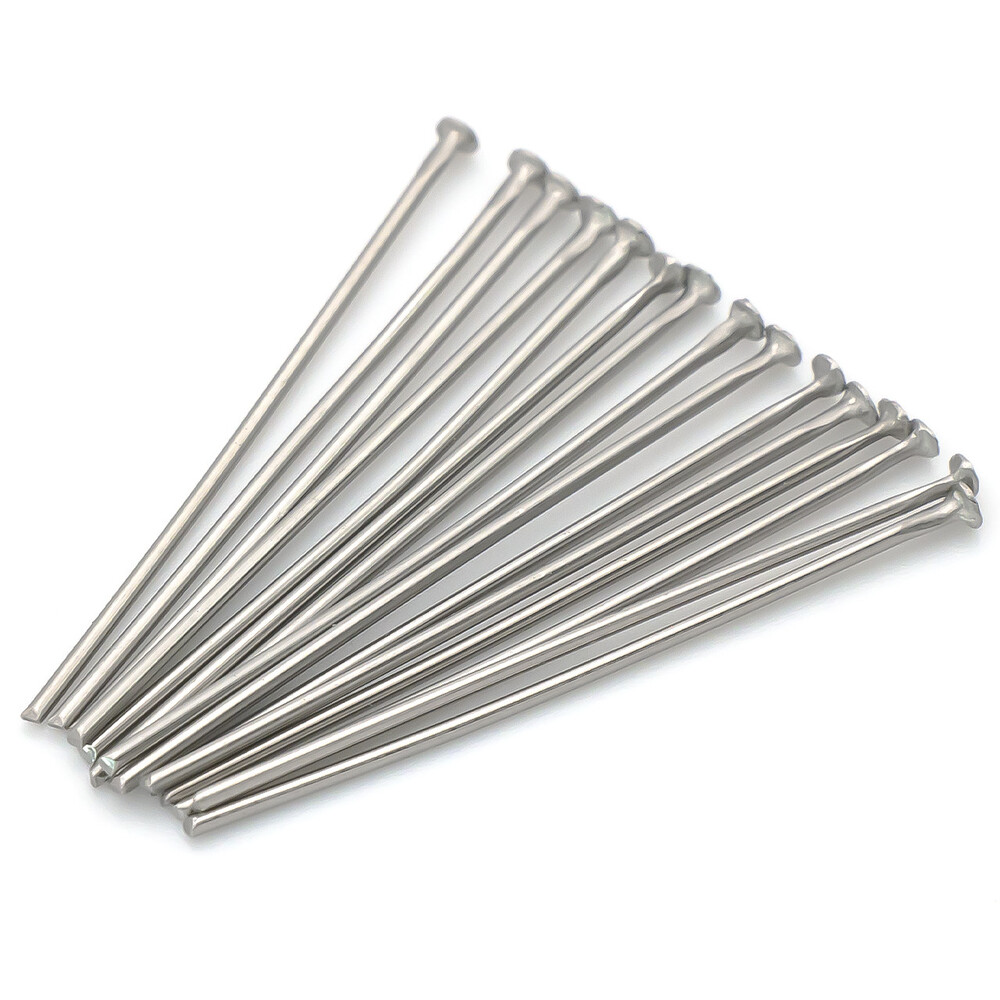 Пины гвоздики с плоской шляпкой из нержавеющей стали 25х0,6 мм +- 200 шт. Платиновый