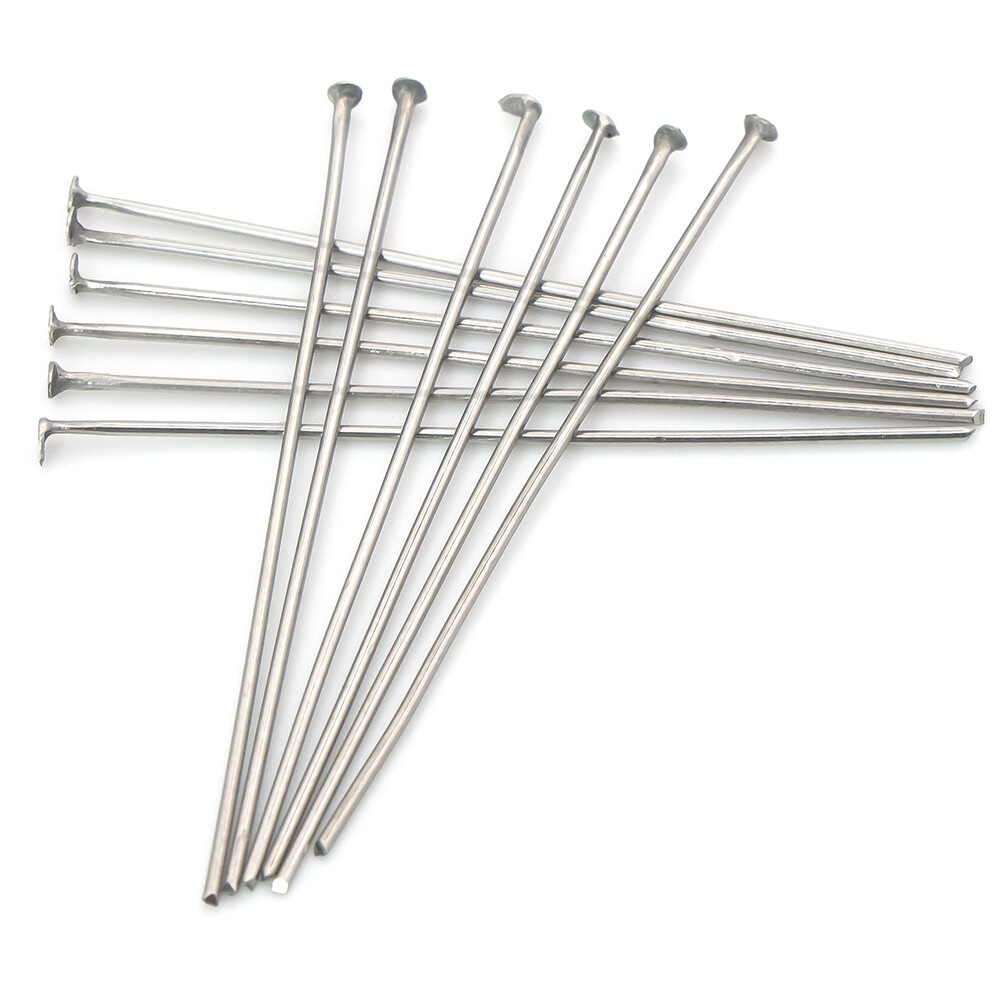 Пины гвоздики с плоской шляпкой из нержавеющей стали 30х0,6 мм +- 200 шт. Платиновый