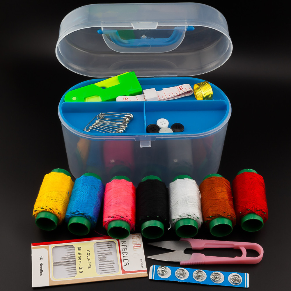 В набор включены разнообразные цвета ниток, что позволяет выбирать подходящий оттенок для любого шва. Иголки различных размеров предоставляют возможность работать с разными тканями, а наличие пуговиц и кнопок дает возмозность замены деталей на одежде.