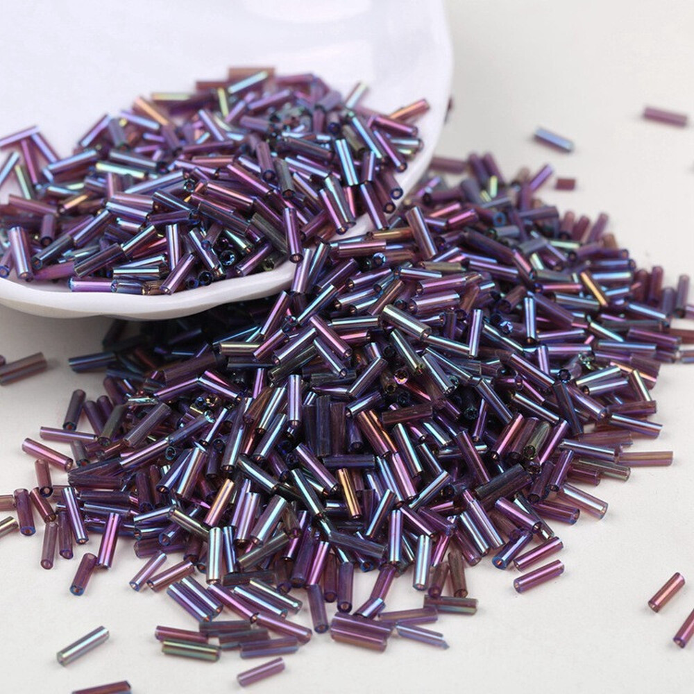 Бисер стеклярус блестящий 2х6 мм 50 г Фиолетовый радужный