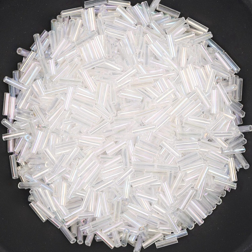 Бисер стеклярус блестящий 2х6 мм 50 г Прозрачный радужный