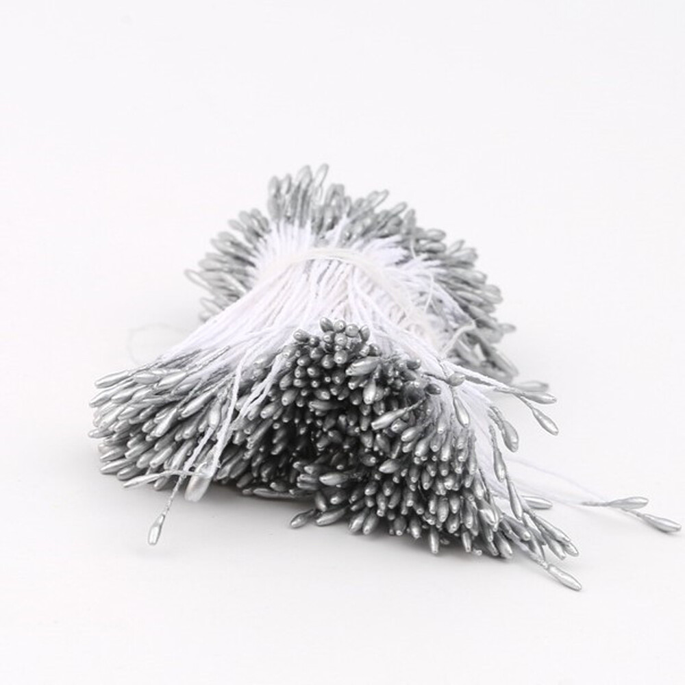 Тычинки двойные перламутровые 6х0,1 см +-360 шт. Серебристый