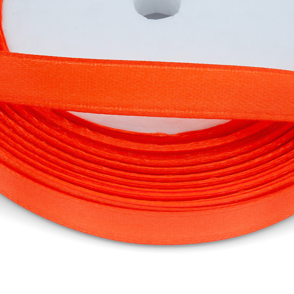 Лента атласная 1 см Морковный флуоресцентный 1 рулон +-23 м