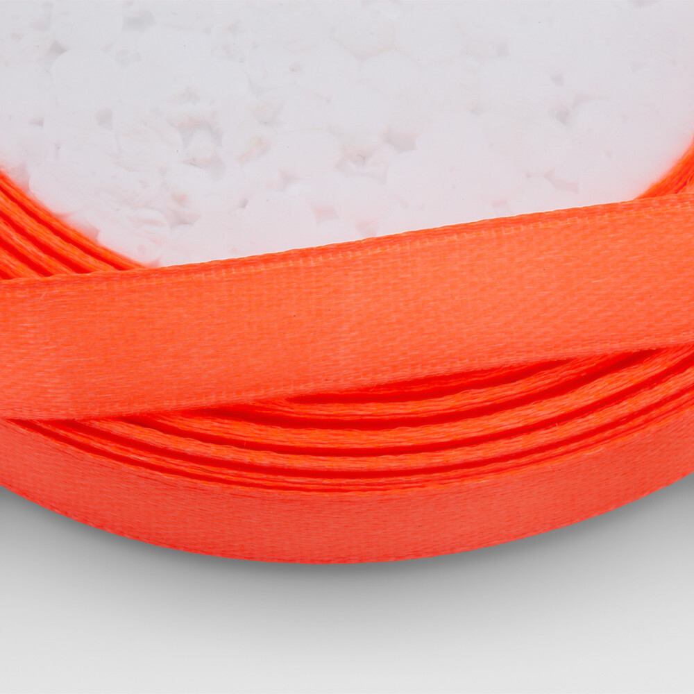 Лента атласная 1 см Оранжево-розовый неон 1 рулон +-23 м