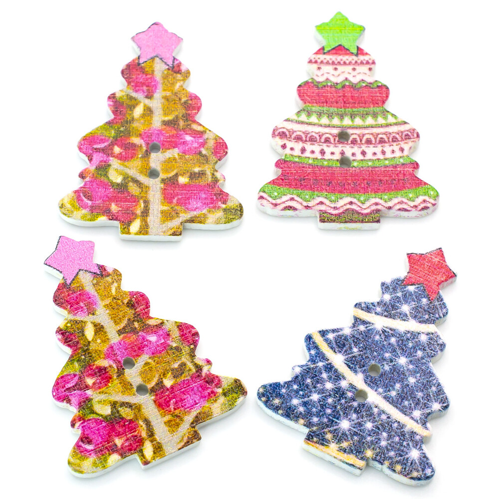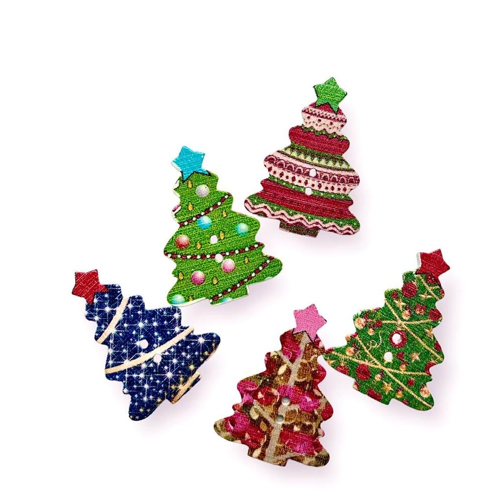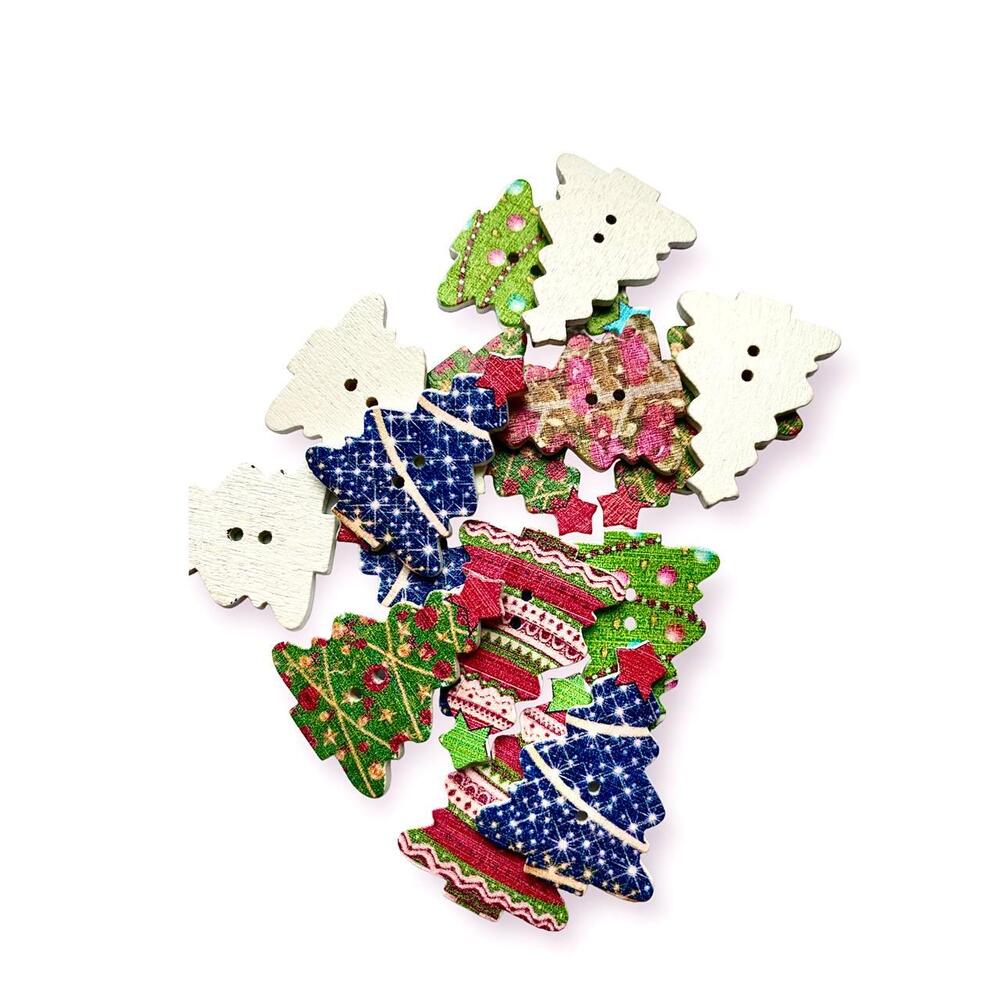 Пуговицы фигурные Новогодняя елочка деревянные 34х25 мм 15 шт. Разноцветный
