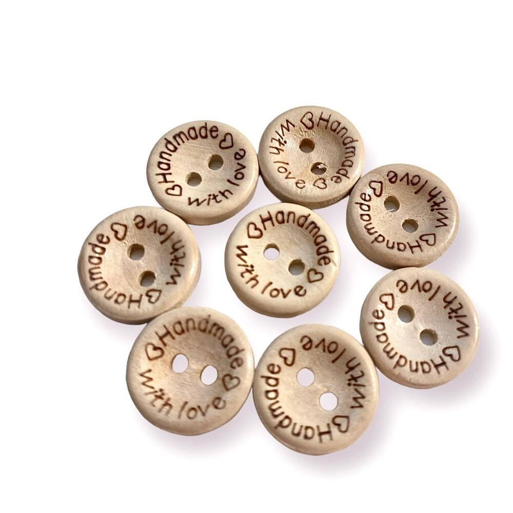 Пуговицы деревянные с надписью Handmade with love круглые 15 мм 40 шт. Бежевый