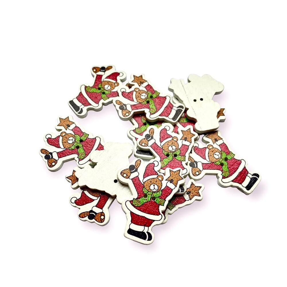 Пуговицы фигурные Медведь Санта Клаус деревянные 35х29 мм 15 шт. Разноцветный
