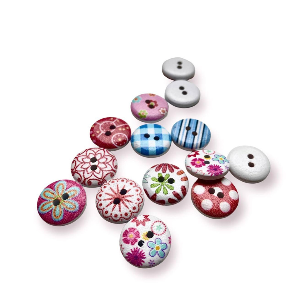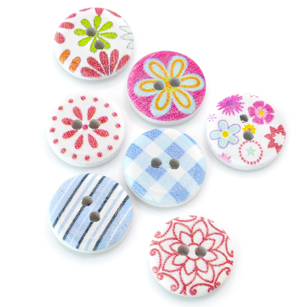 Пуговицы деревянные с разнообразным принтом круглые 15 мм 30 шт. Разноцветный