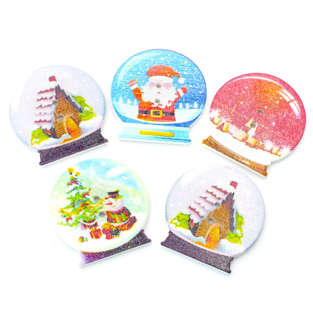 Пуговицы фигурные Снежный шар деревянные 30х29 мм 10 шт. Разноцветный