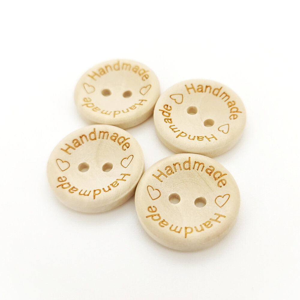 Пуговицы деревянные с надписью Handmade круглые 15 мм 40 шт. Бежевый