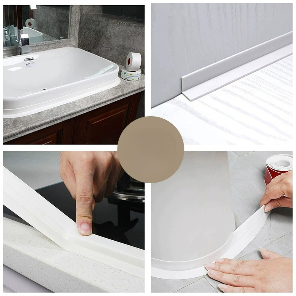 Гибкая структура бордюрной ленты позволяет легко адаптировать её к различным формам и углам, что делает её универсальным решением для герметизации швов вокруг ванн, умывальников, моек и кухонных столешниц.