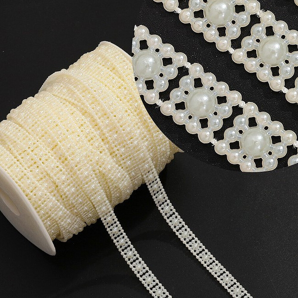 Полубусины на нитке Декоративная лента 10 мм 1 м Кремово-белый Krem_АА007