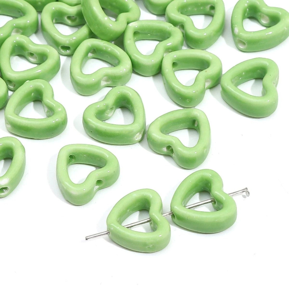 Бусина Сердце разделитель керамическая 14,5х13 мм 1 шт. Салатовый