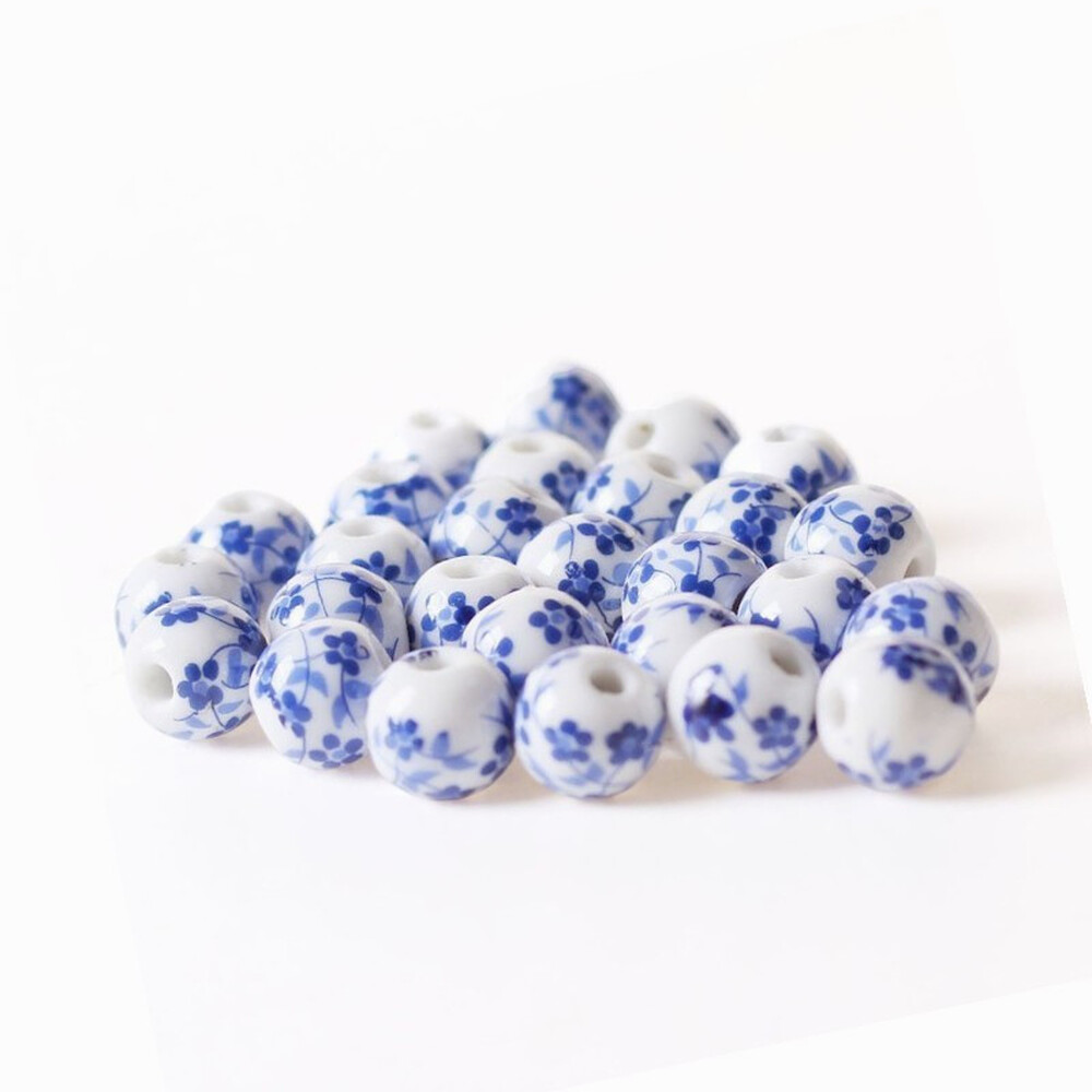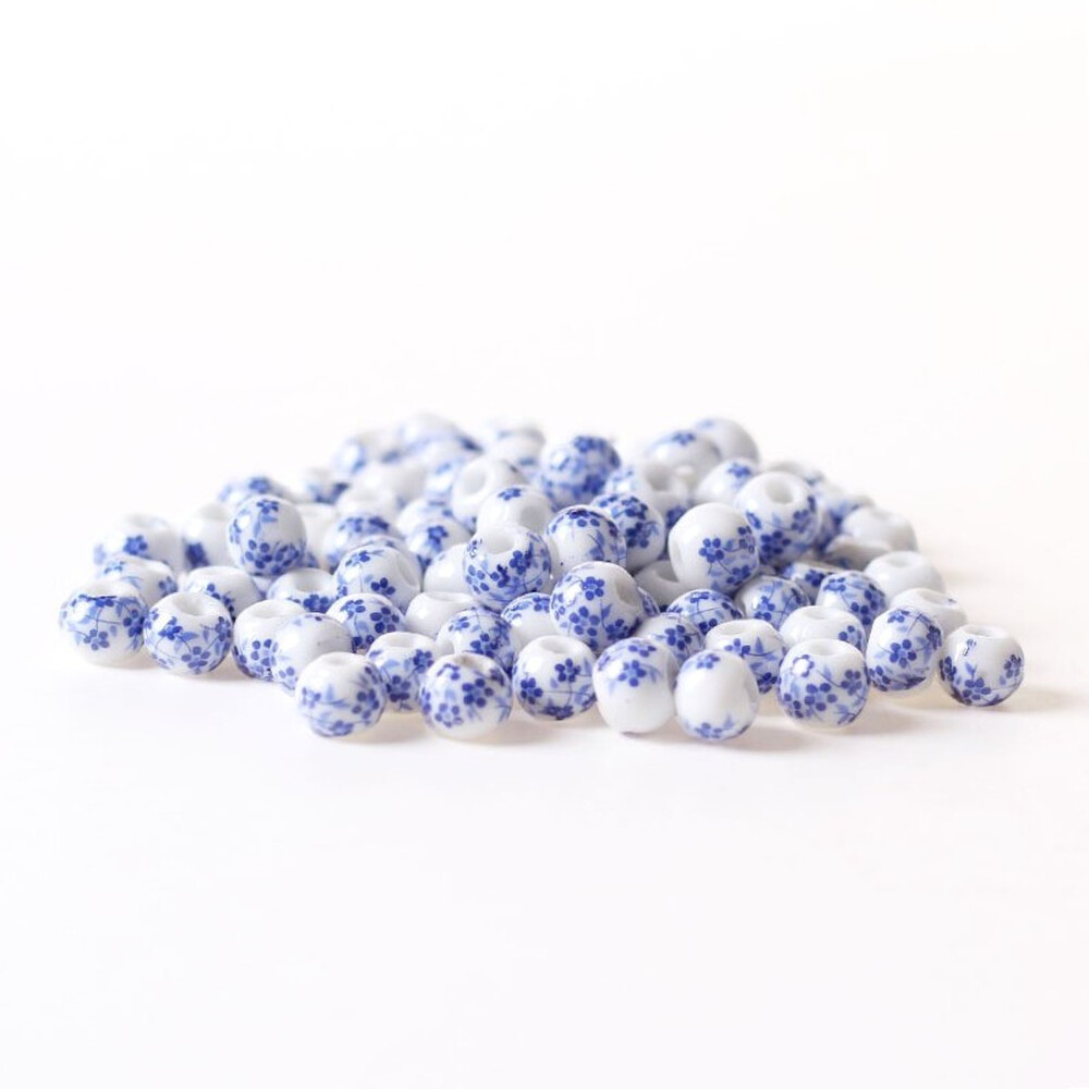 Бусины Шар керамические 10 мм 5 шт. Белый с цветочным принтом