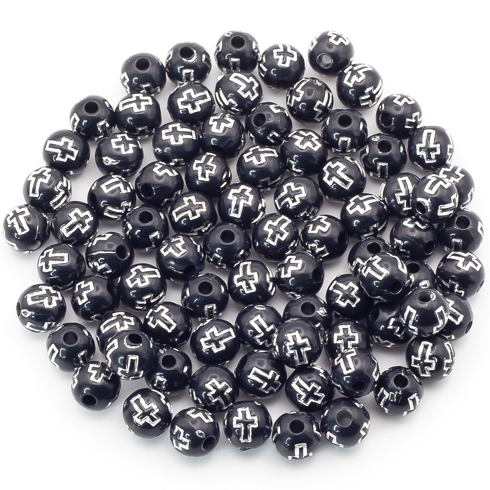 Бусины круглые Крестик серебристый 8 мм Черный +-25 г (+-90 шт.)