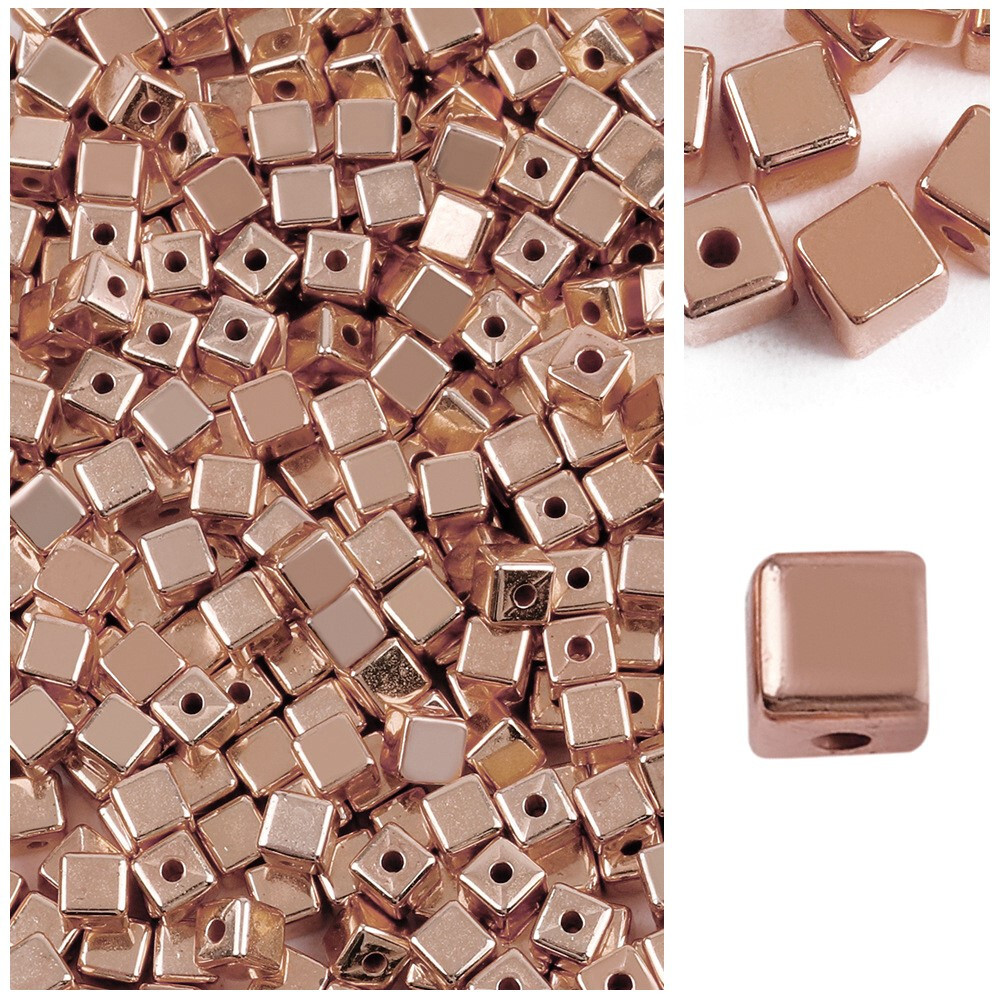 Бусины пластиковые Куб 4х4 мм Ø 1 мм +-100 шт. Розовое золото