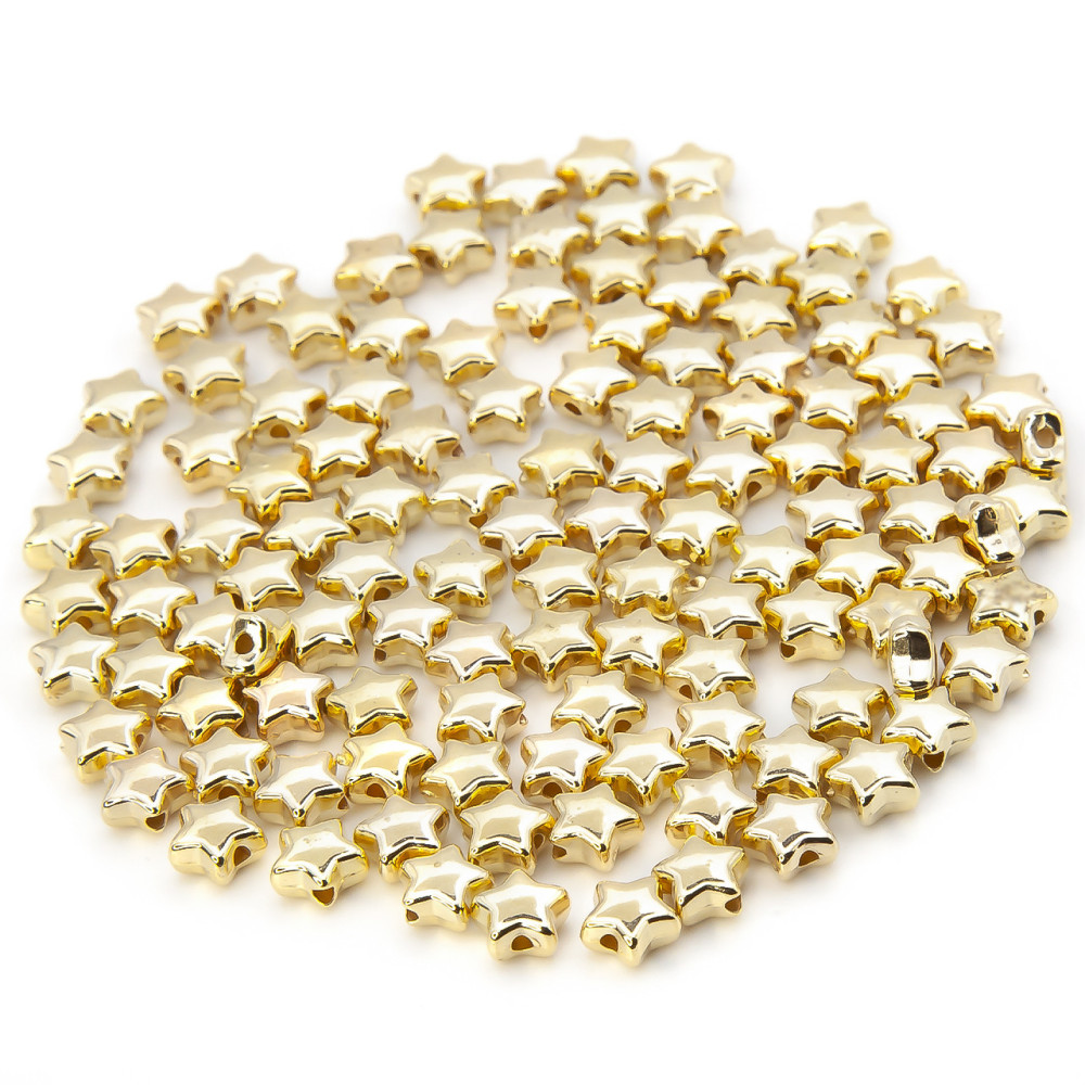 Бусины имеют форму звезды, изготовлены из качественного пластика с нанесением метализированного покрытия. Активно используется рукодельницами в создании неповторимых композиций и украшений.