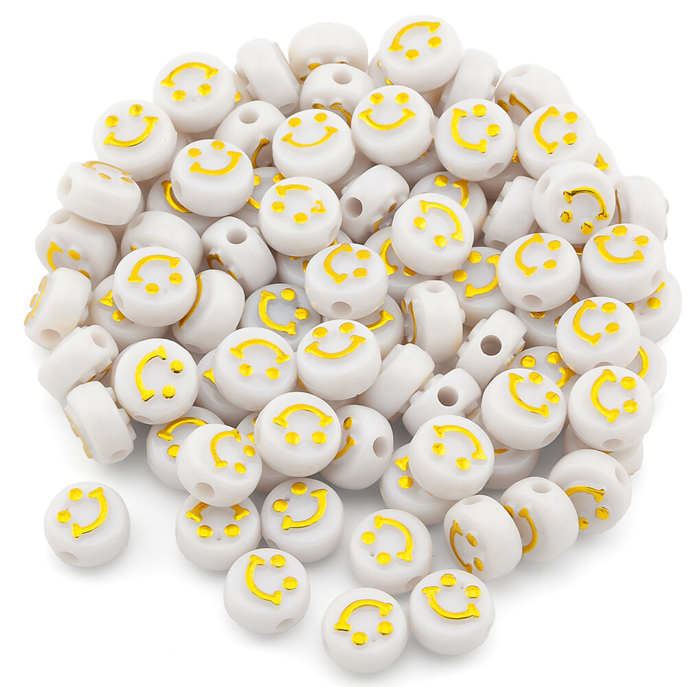 Пластиковые бусины смайлик 10х6 мм 25 г (+-80 шт.) Белый