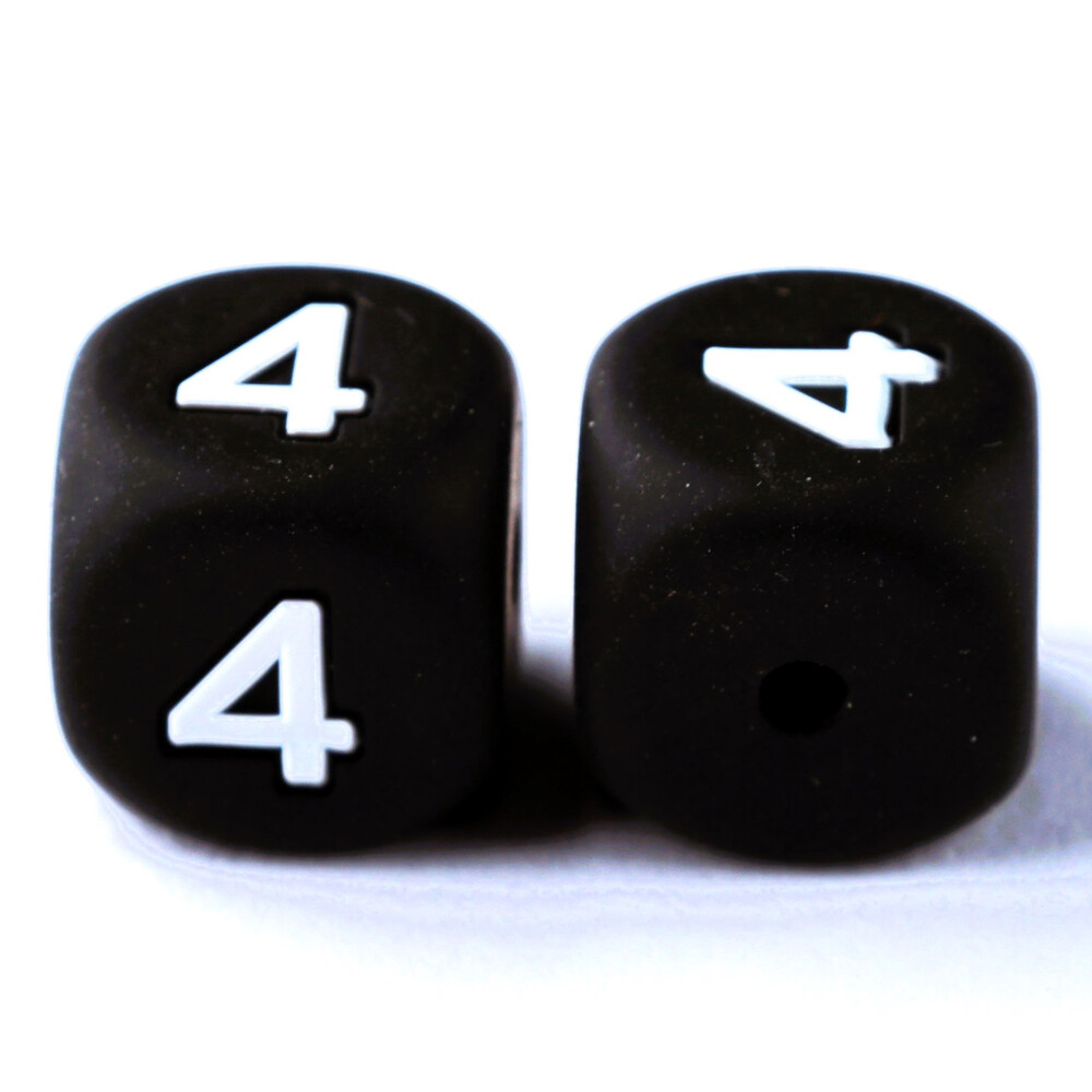 Бусина цифра 4 силиконовая для грызунков 12х12 мм Ø 2 мм 1 шт. Черный с белым