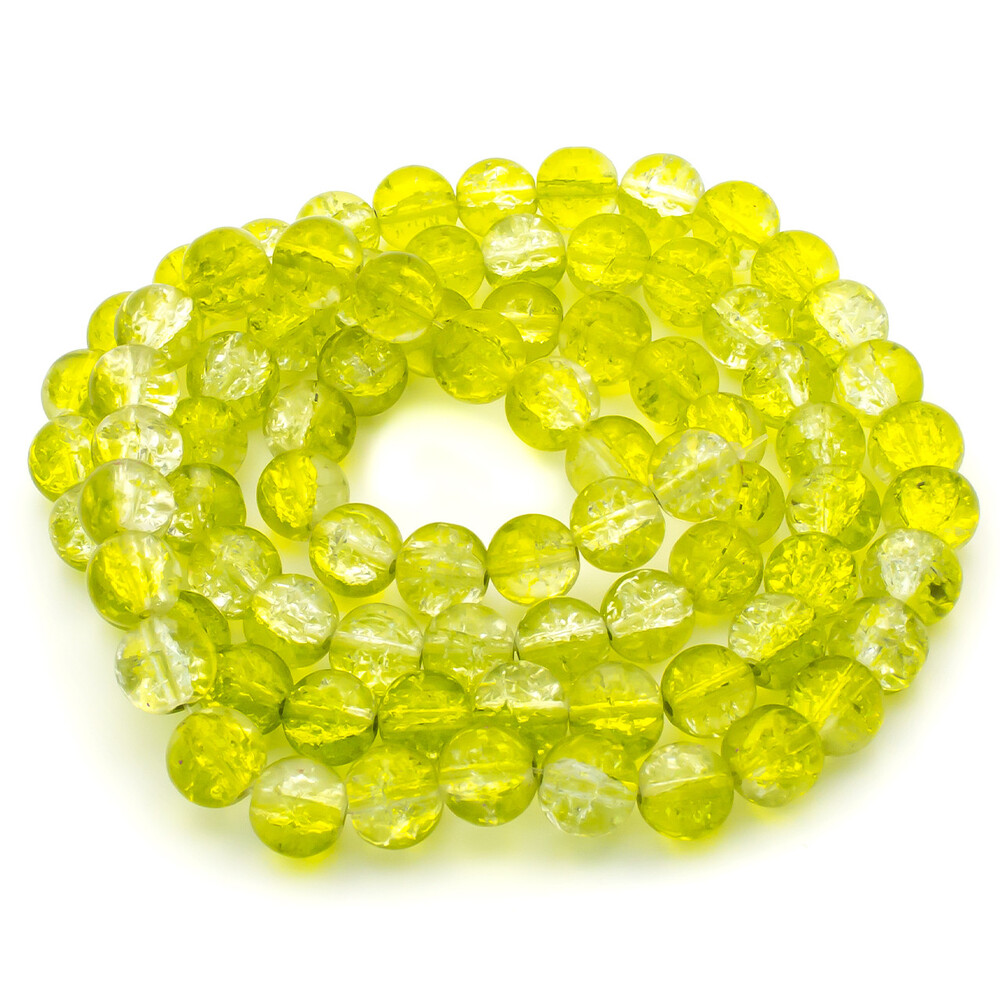 Бусины Битое стекло кракелюр 10 мм Желтый с прозрачным нить 80 см