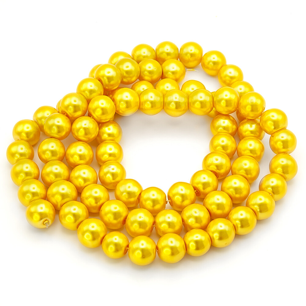 Бусины стекло под жемчуг Шар 12 мм ±68 шт. 80 см 67 Желтый