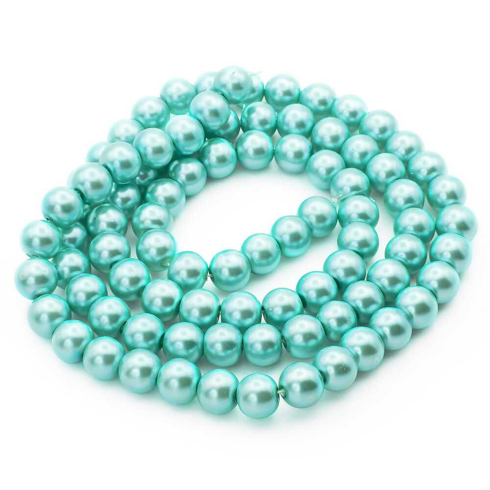 Бусины стекло под жемчуг Шар 10 мм ±90 шт. 80 см Бирюзовый