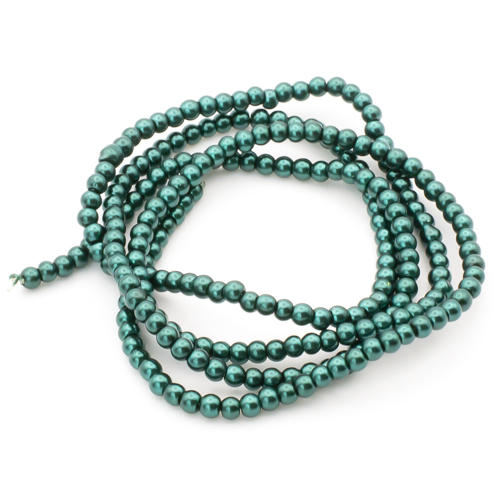 Бусины стекло под жемчуг Шар 3 мм ±210 шт. 62 см Зеленое море