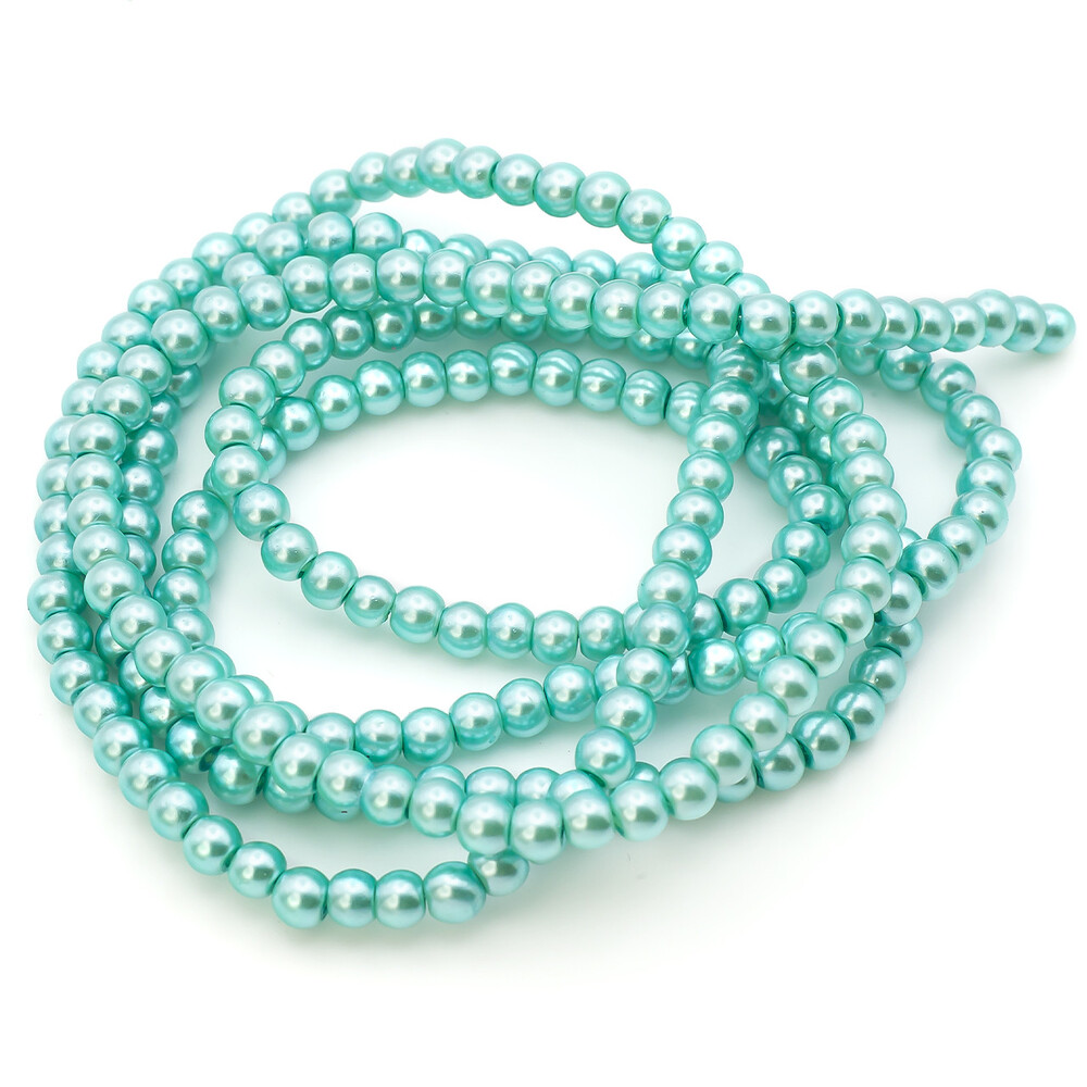 Бусины стекло под жемчуг Шар 4 мм ±210 шт. 80 см Бирюзовый